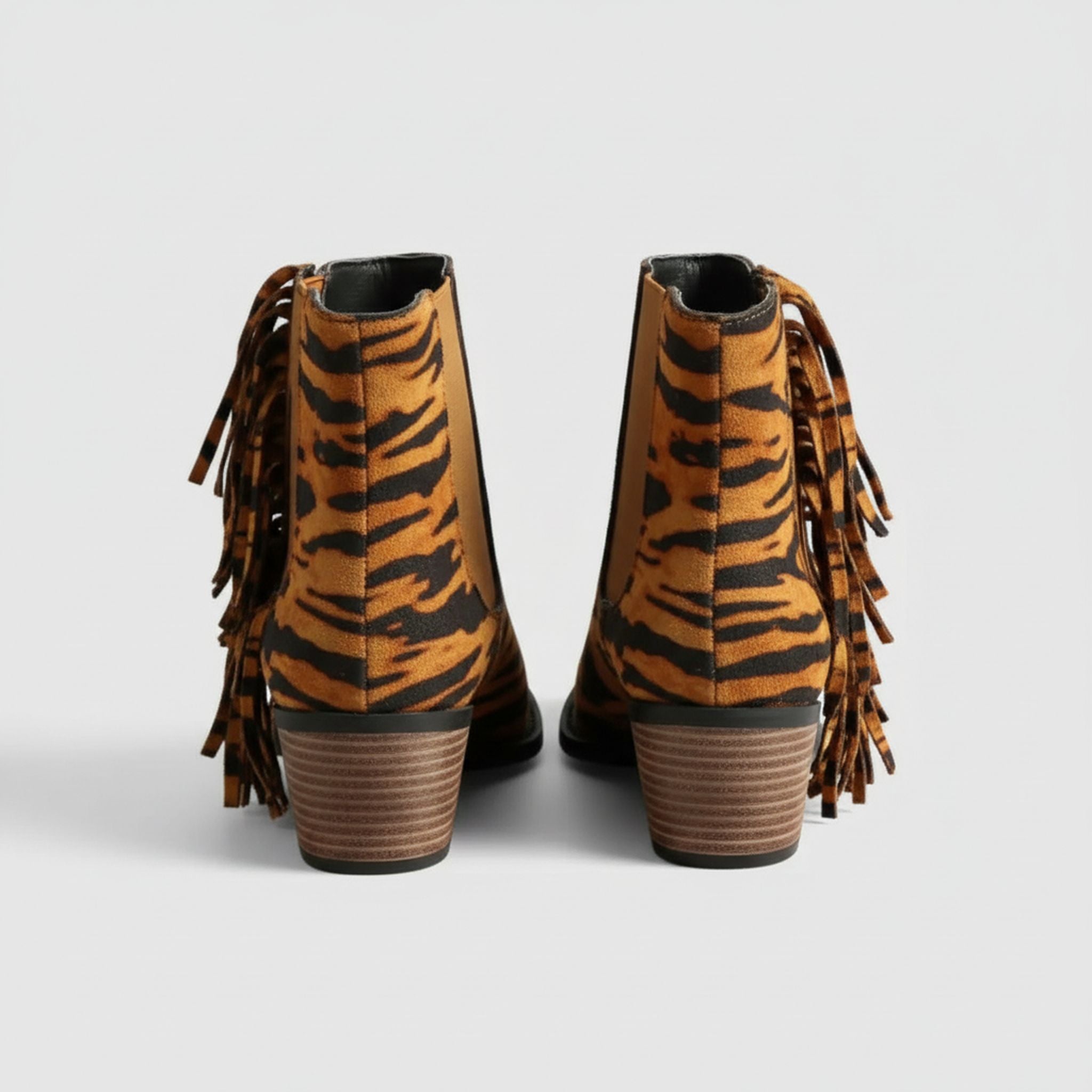 These fringe-detail western ankle boots for women bring a classic cowboy-inspired look to everyday outfits. The ankle-length design makes them easy to wear with jeans, skirts, or dresses, adding a relaxed western touch without being overdone. Designed for casual wear, these women’s western ankle boots feature a block heel for stable walking and a slip-on style that is simple to put on and take off. The fringe detail adds movement and texture, making them a stylish choice for autumn and everyday use.