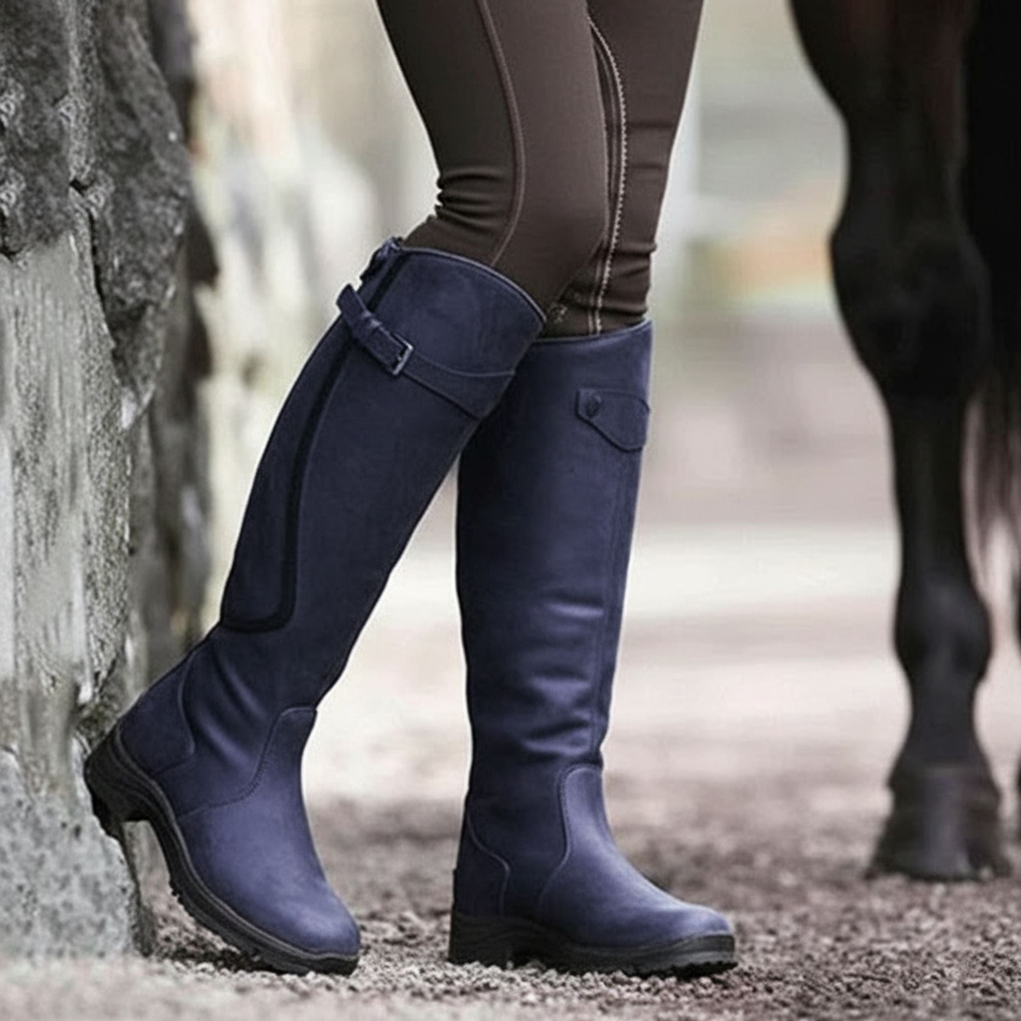 These winter riding boots are designed to keep your feet dry and comfortable in cold and wet conditions. Made with a durable, water-resistant outer material, they offer reliable protection for outdoor walks, countryside activities, or stable use. The tall boot design provides a secure fit around the leg, while the inner lining adds warmth during winter months.