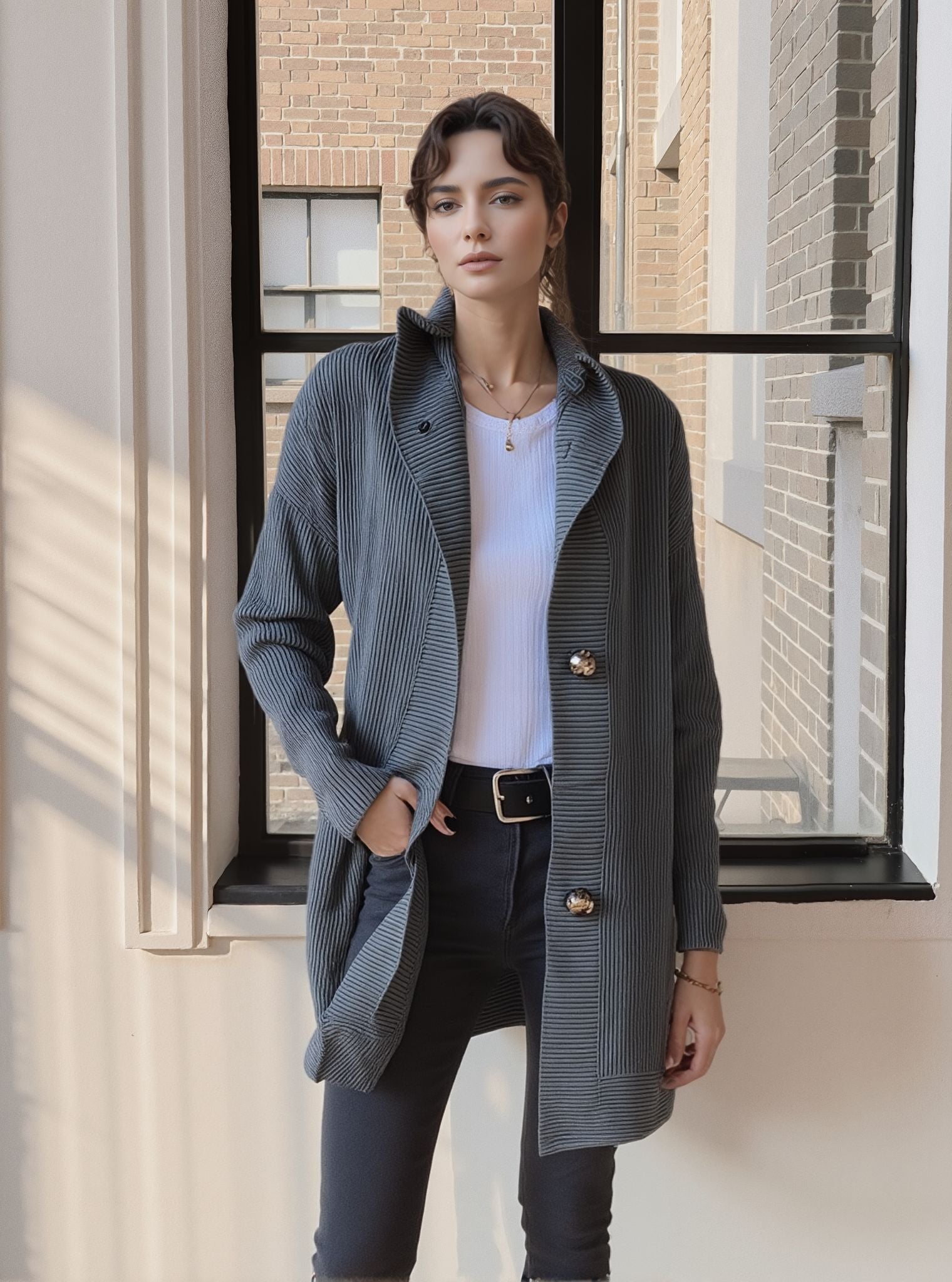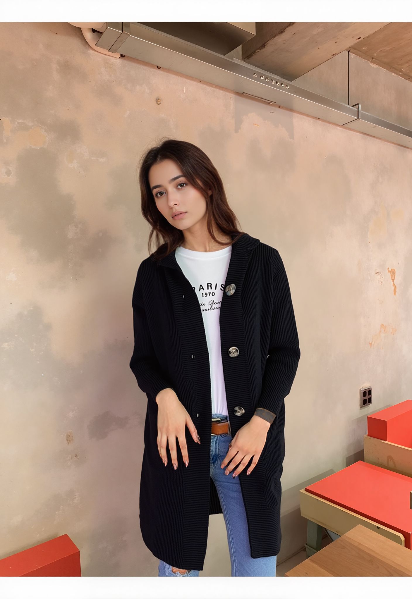 One (1) Longline Knit Button-Up Cardigan Coat for Women