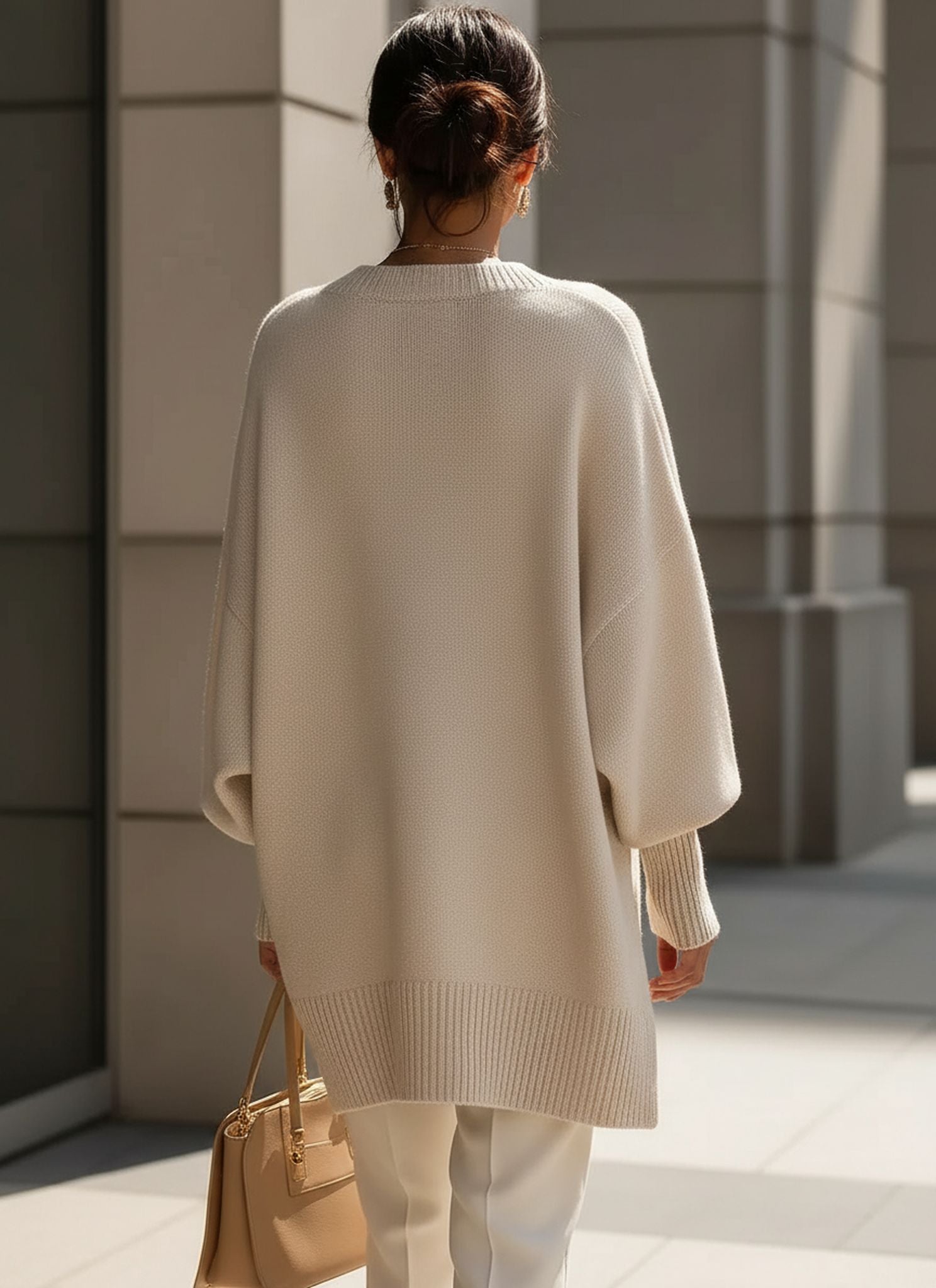 The wide sleeves and draped sides create a naturally flowing design that adds ease of movement. It’s a practical choice for cooler days and can be worn at home, outdoors, or while travelling. The neutral shade makes it easy to pair with many colors in a wardrobe.