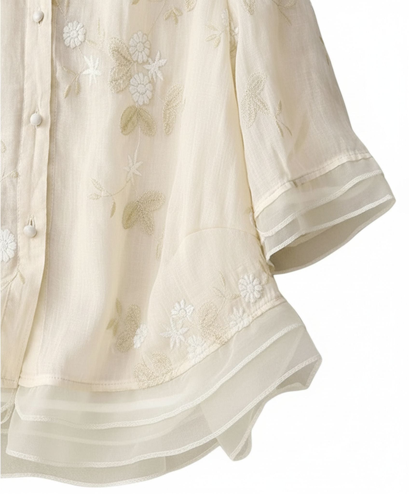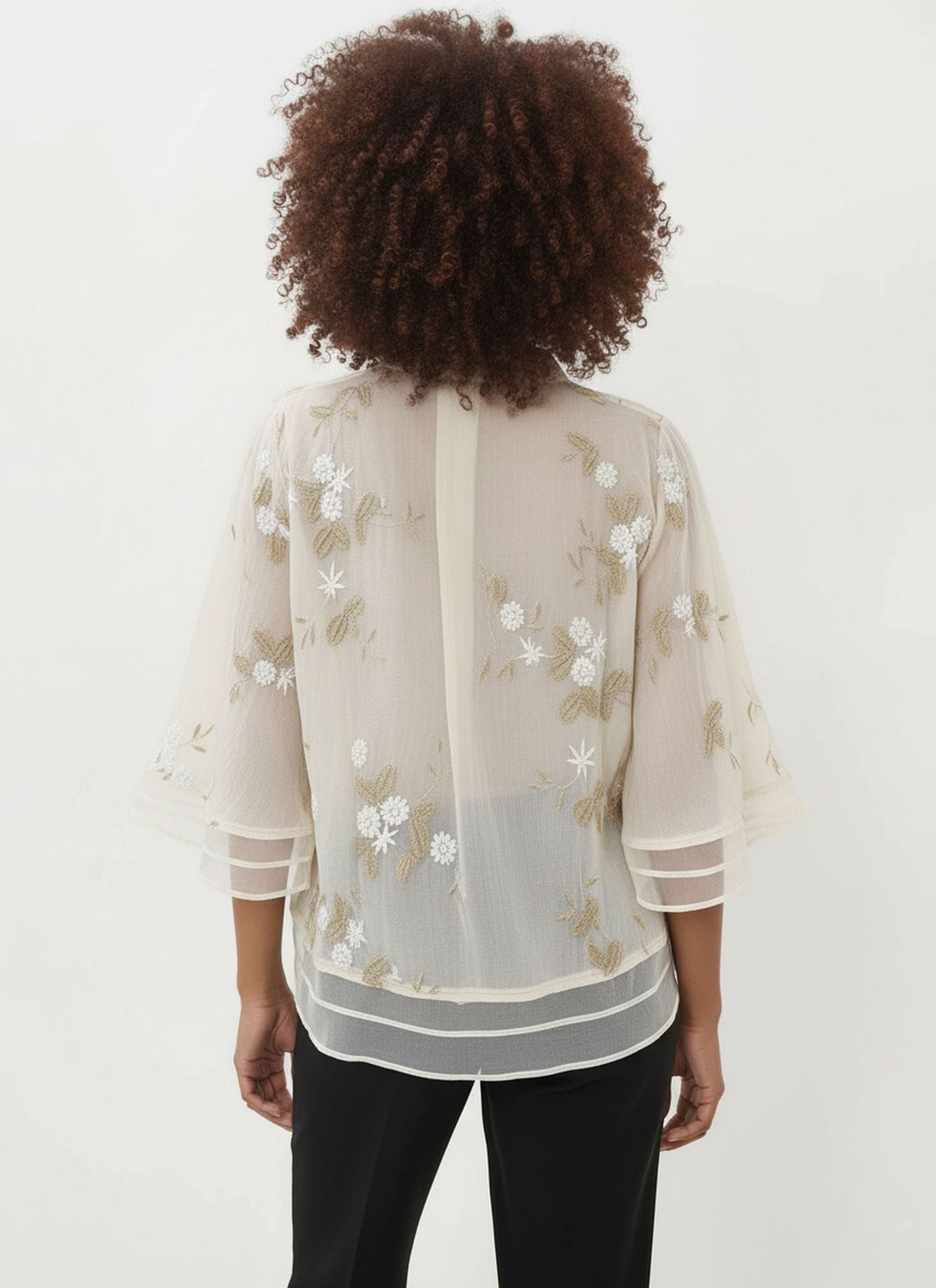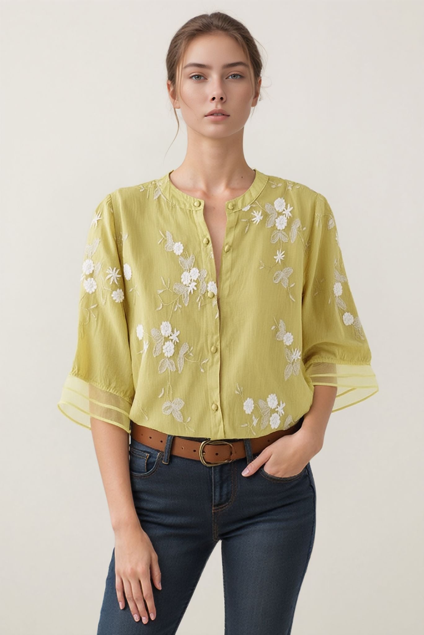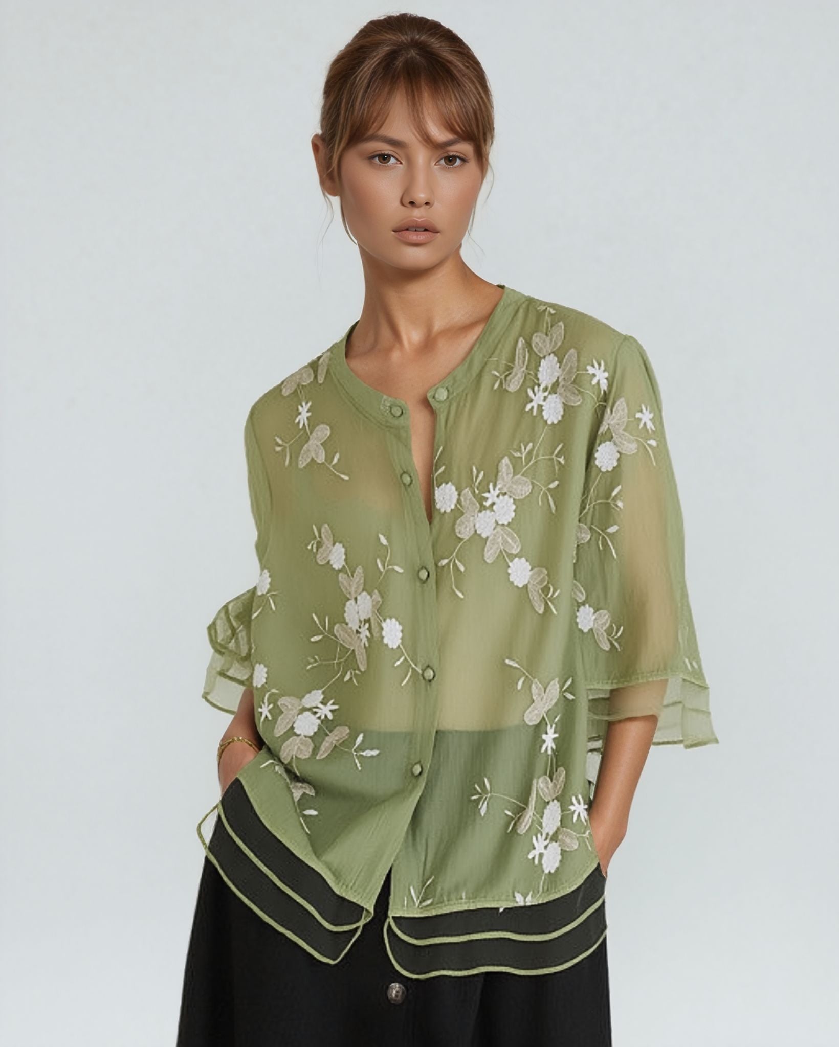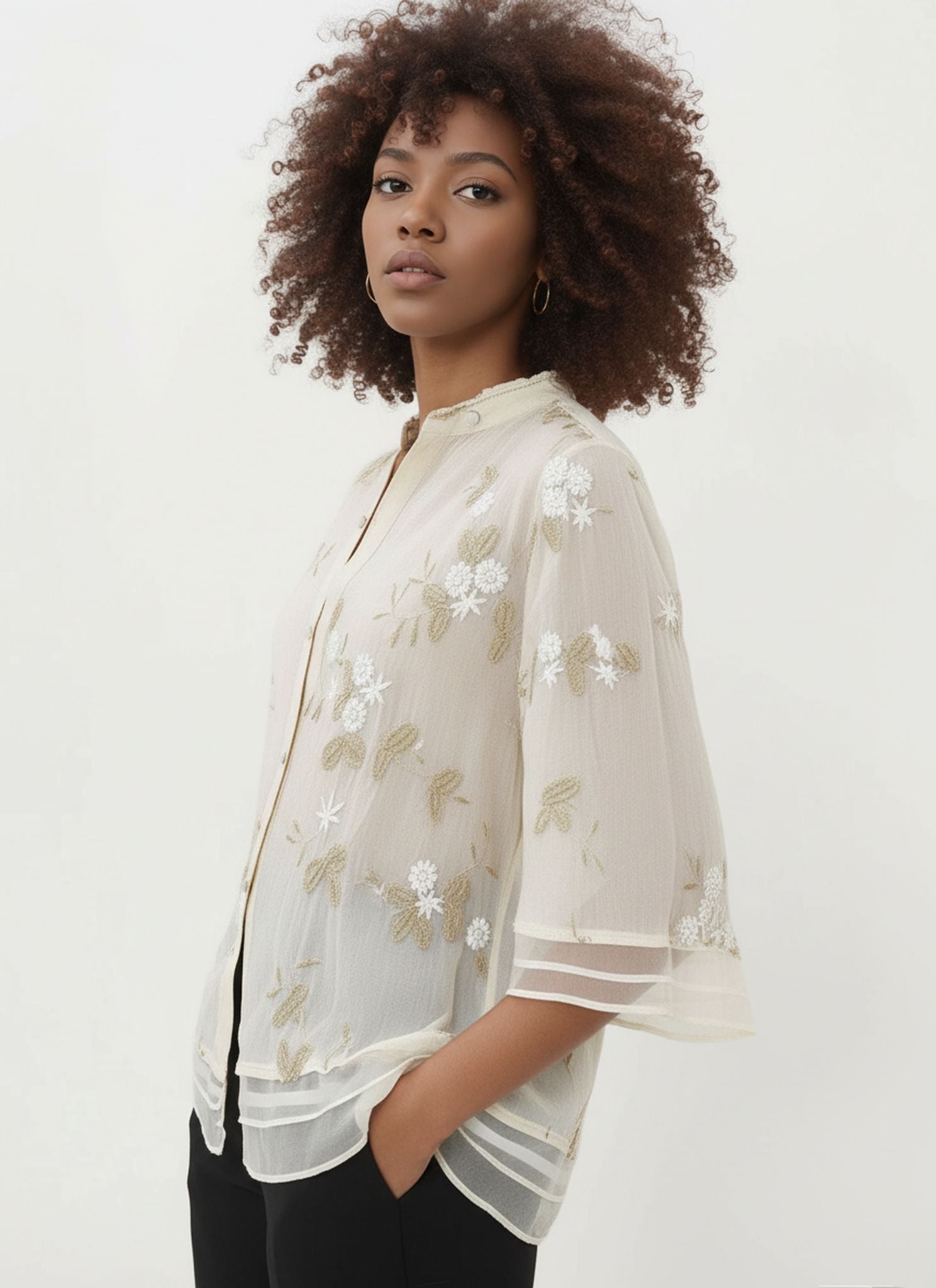One (1) Sheer Floral Embroidered Button-Up Blouse for Women