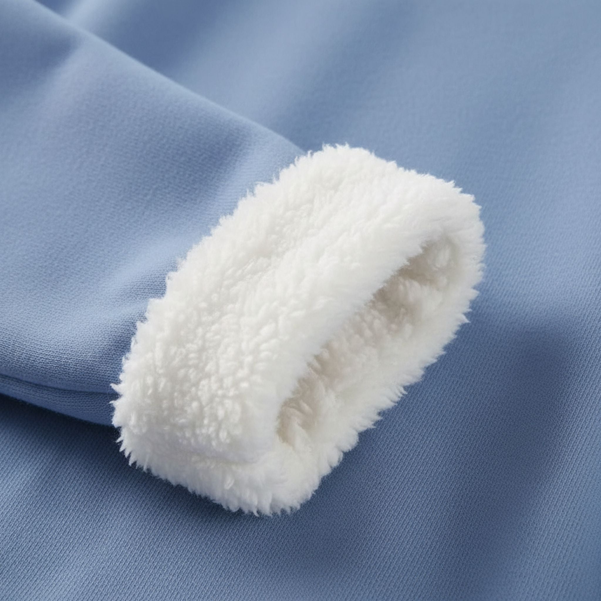 This fleece-lined lounge set offers a soft and relaxed feel, making it suitable for everyday comfort at home or casual outings. The set includes a round-neck top and matching jogger-style trousers with an adjustable drawstring. Its smooth outer fabric and cozy inner lining create a warm, comfortable layer for cooler days.