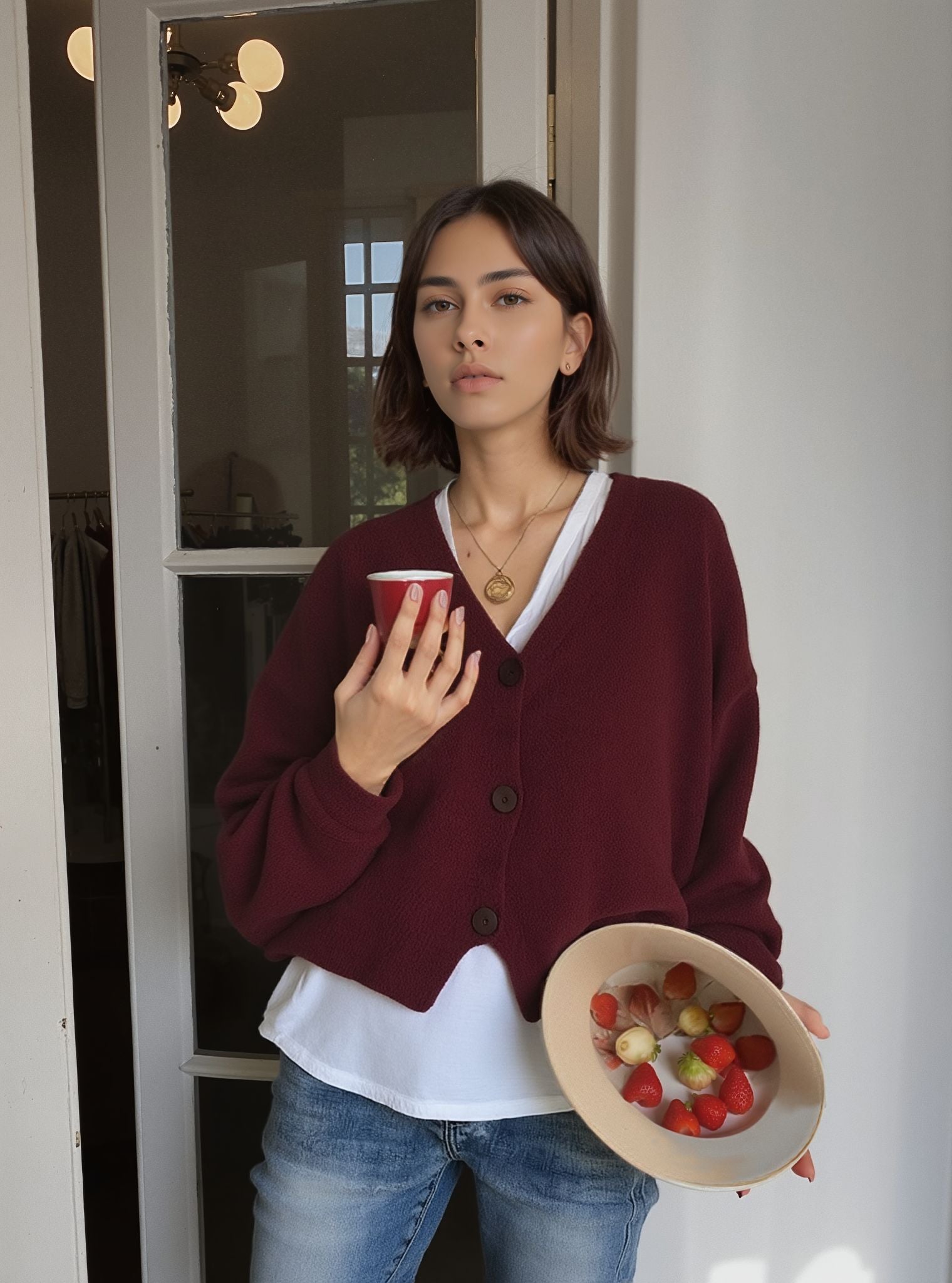 This soft knit cardigan offers a relaxed, everyday style that is easy to pair with jeans, T-shirts, or light tops. The soft fabric and comfortable fit make it suitable for casual outings or staying cozy at home. Its simple shape gives it a laid-back look that works well in any wardrobe.
