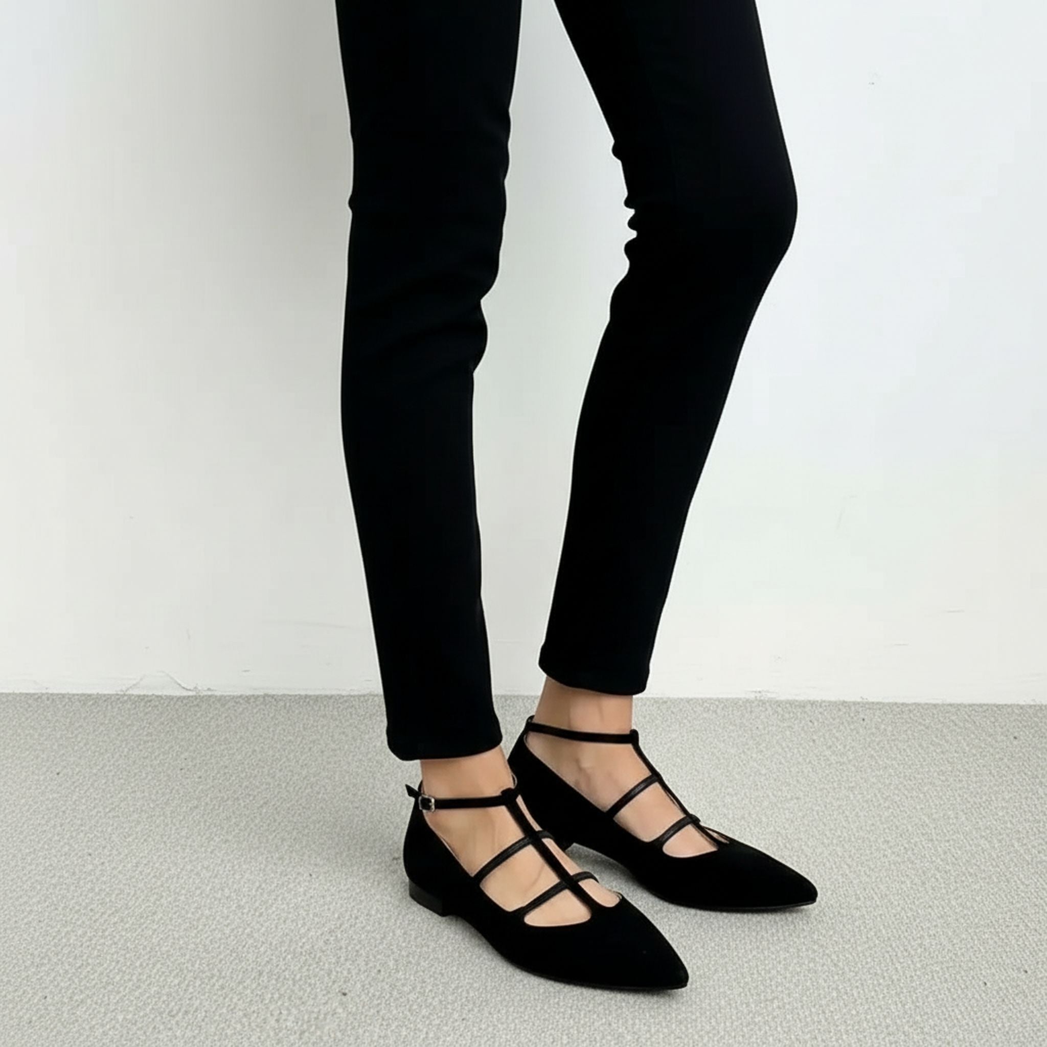 These pointed-toe shoes with block heels offer a simple and elegant style that works well with everyday outfits. The slim straps create a light, graceful look, while the pointed toe gives the shoes a modern shape.