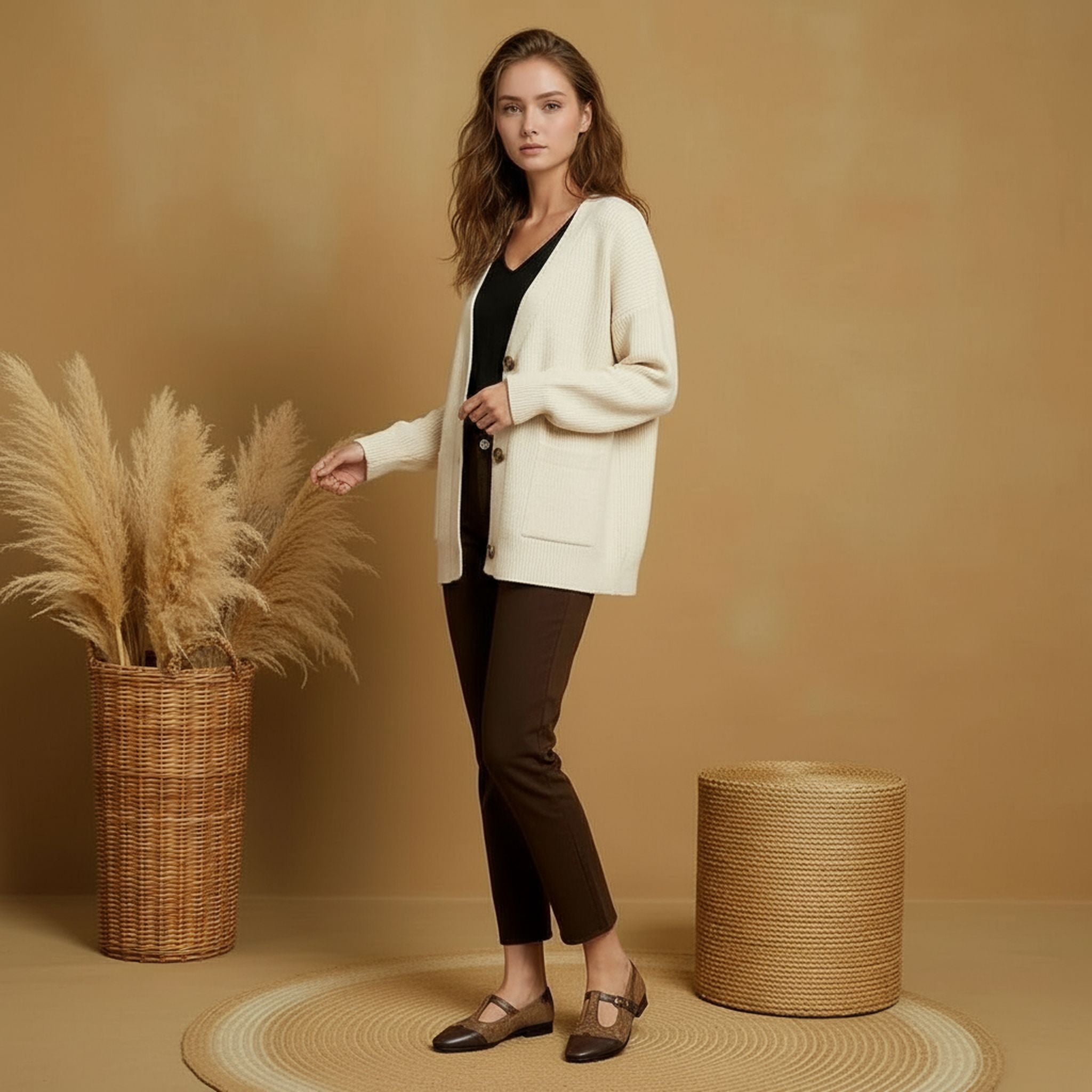 These vintage-inspired T-bar tweed flats bring a classic look to everyday outfits. Designed with a mix of textured materials and soft colors, they create a timeless style that suits both casual and smart-casual wear.